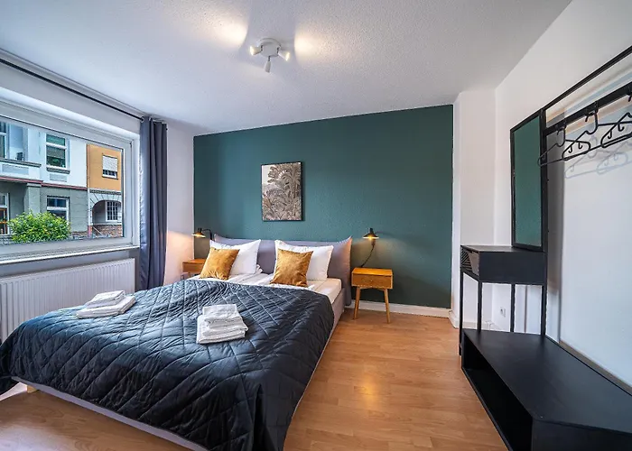 Das 75 m^2 große Fra01: Design Apartment Koblenz City - Wlan - 2 Bedrooms befindet sich im Viertel Süd von Koblenz und bietet Unterkunft in 20 Gehminuten Entfernung von den kulturellen Sehenswürdigkeiten wie der Balduinbrücke.